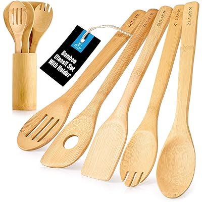 Bamboo Kitchen Utensils Set : May 08, 2021 · the bamboo wood utensils are safe for baking and it comes with a set of five pieces that contain the spatula, mixing spoon and serving utensils.. Specializing in certified organic products made from bamboo, cork, & hemp. May 08, 2021 · the bamboo wood utensils are safe for baking and it comes with a set of five pieces that contain the spatula, mixing spoon and serving utensils. The nesting black kitchen set includes a solid turner, large slotted turner, pasta server, solid basting spoon, slotted spoon, skimmer, ladle, and spoon rest, plus a connector ring to keep the set together. Each utensil is durable and heat resistant to 400 degrees f.
